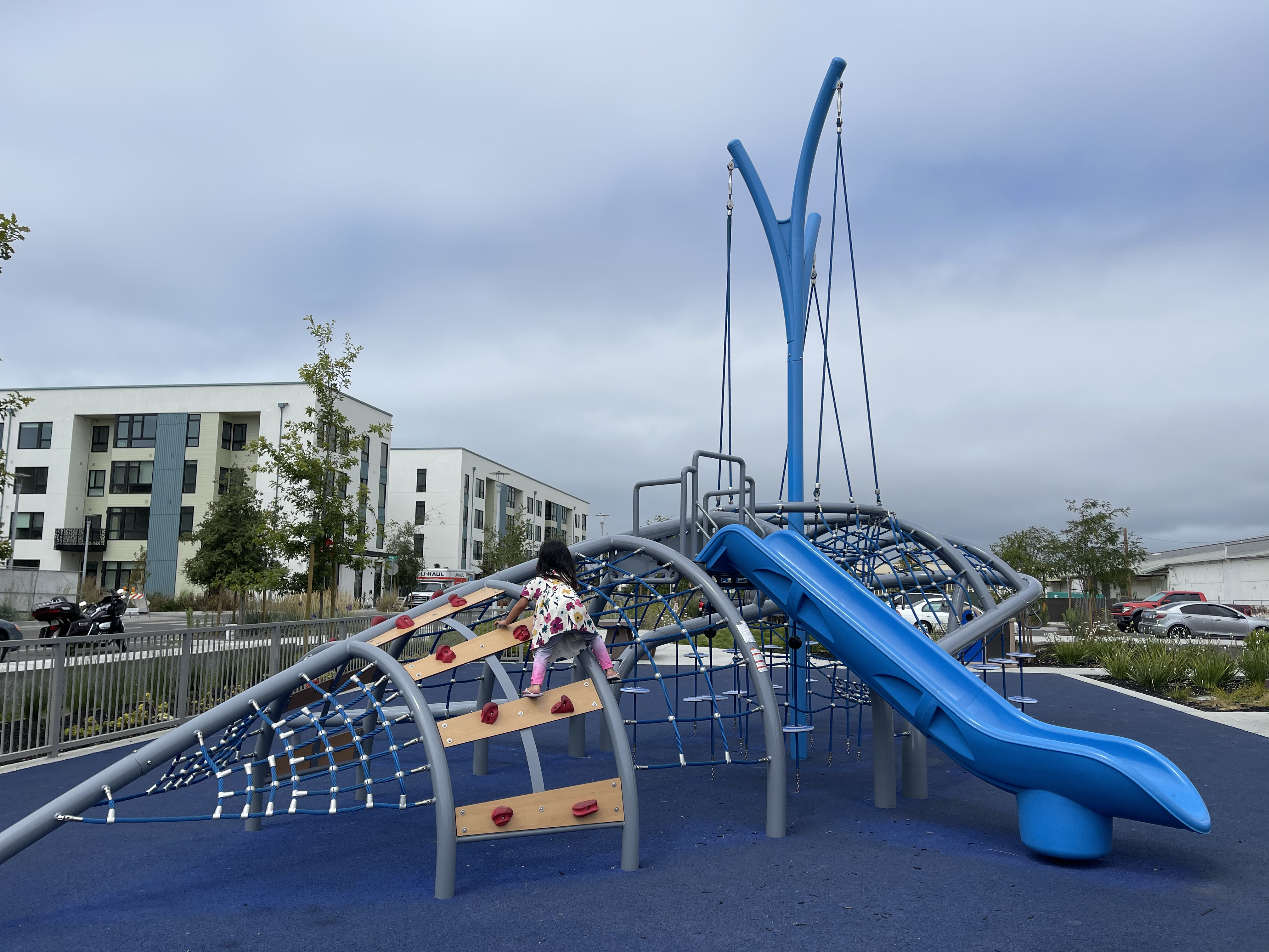 The main climbing structure is a giant whale with monkey bar teeth. This park is great for families with kids of all ages because there is a toddler and a bigger kid section.