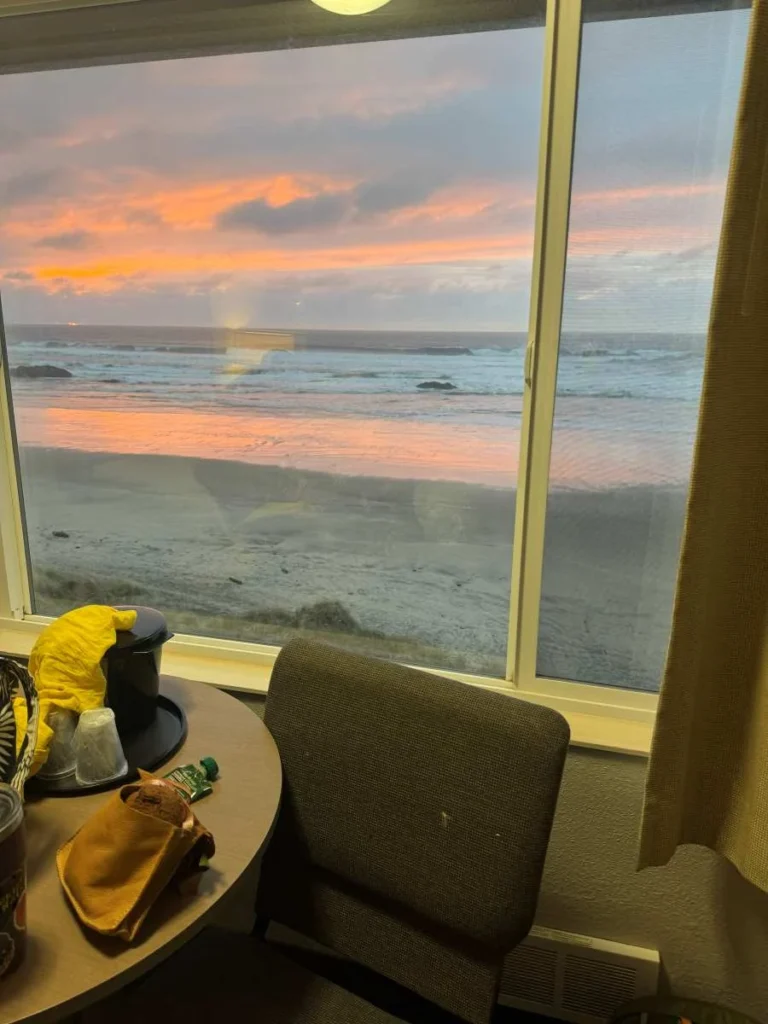 Most rooms along the seaside resort have epic ocean views. The windows face west, offering beautiful sunsets, and the sound of ocean views while you sleep. It was exciting to walk into our room and see the waves crashing just past the window, or wake up to the foggy beach and seabirds.