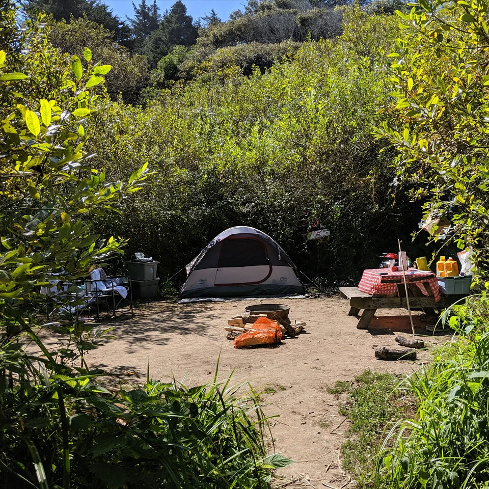 Drive north of Fort Bragg about 20 miles to find a campground with sweeping coastal views on a bluff above a three-mile beach. It is beautiful, windy, and cold! The campsites are close together and very exposed (no trees, just beach grass between) and all have a gorgeous view of the ocean.