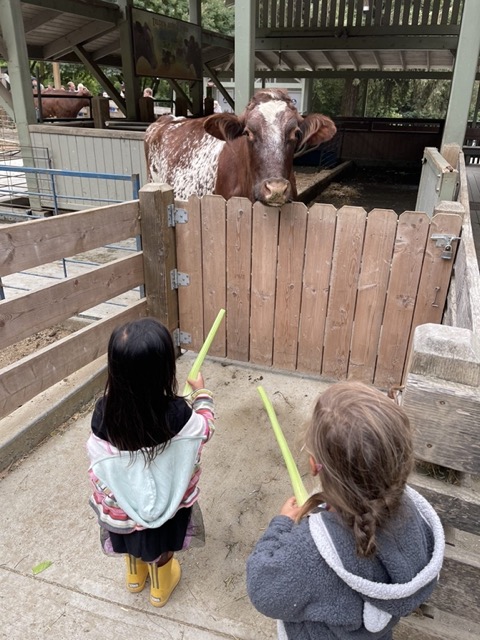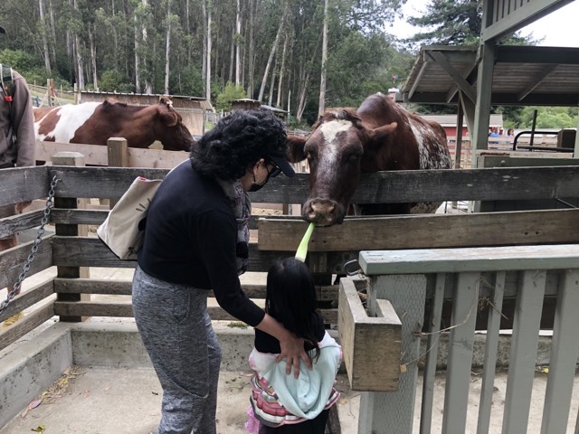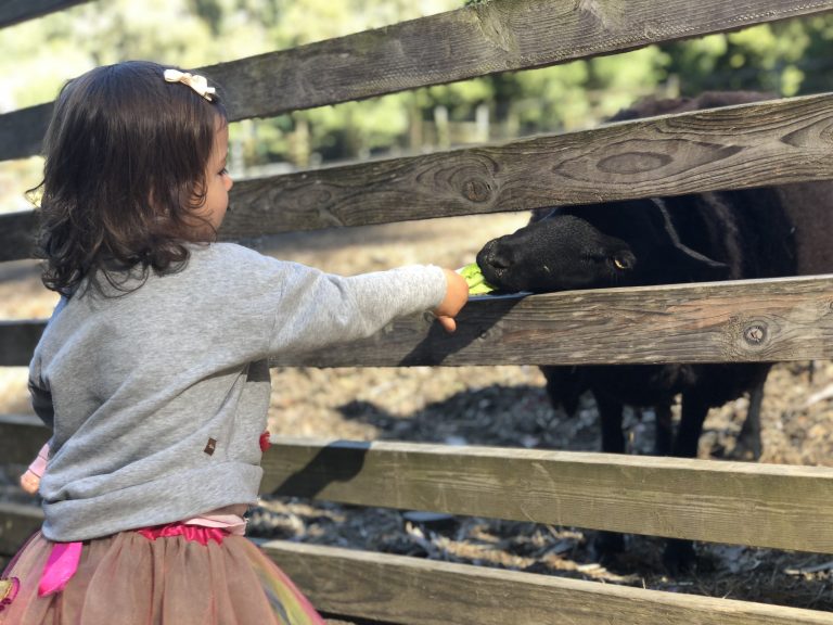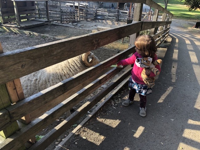 My daughter was a little spooked by the sheer size of the cows when you first enter, so I would recommend heading towards the smaller-sized furry friends to warm the kiddos up. You make a counterclockwise loop around the farm (some of which is uphill) stopping to feed animals along the way. Come early, because it can get crowded!