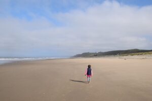 Just south of Highway 1 and 10 minutes from downtown Watsonville through fields of strawberries, you’ll find a secluded beach! We had fun running on the mostly empty beach, finding shells, crabs, jellyfish, and birds.
