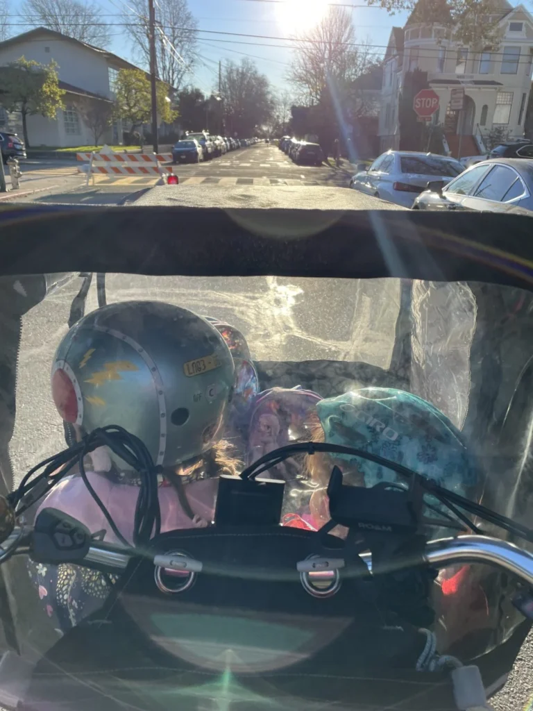My hometown is super bike-friendly; there are clear bike lanes, a city-wide speed limit of 25 miles per hour, and the weather is moderate year-round. My partner and I used to bike to nearby grocery stores or breweries, and when we had kids, we invested in a bike trailer.